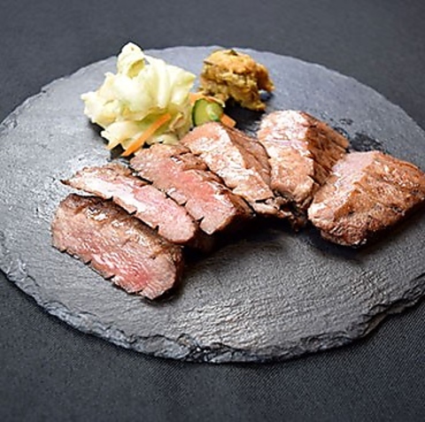 牛タンを丁寧に1枚1枚切り分け、シンプルに塩で味付け。旨味をじっくりと熟成。ボリューム感たっぷりの歯ごたえなのに、ジュワ~ッとした味わいと柔らかさ。牛タン本来の美味さをダイナミックに楽しめる。提供時に飛騨コンロもご一緒にお持ちしますのでいつでも熱々をお召し上がれます。