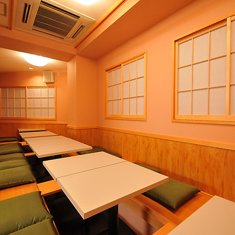 落ち着いた和の雰囲気が魅力の座敷席をご用意。飲み放題付き宴会は4名様~、貸し切り宴会は20~30名様までお座敷のご利用ができます!宴会以外でのご利用も可能ですので、是非一度お問い合わせくださいませ。