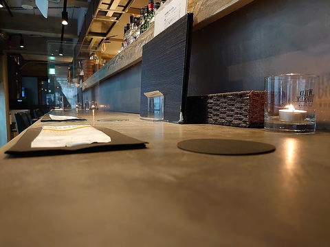 カウンターもテーブルも間隔を広めにとってあり、特にカウンターはゆったりとお過ごしいただけます。