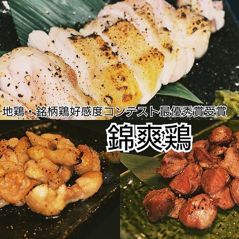 地鶏コンテスト最優秀賞「錦爽鶏」。低脂肪・低カロリー!しっかりとした歯ごたえ、噛むほどに深い旨味とコク広がります。