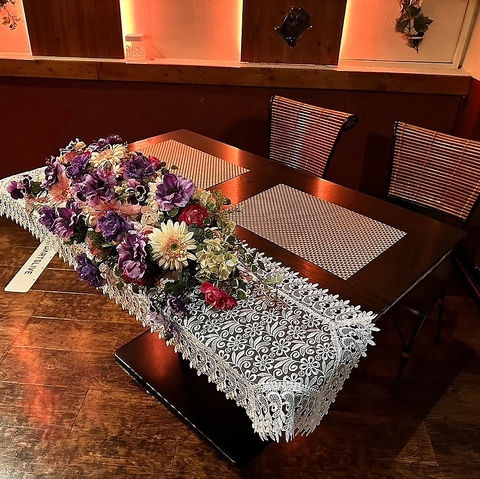 | 備考 | ケーキ・花束のお手配も可能です!ご利用は3日前までにご予約ください。 |