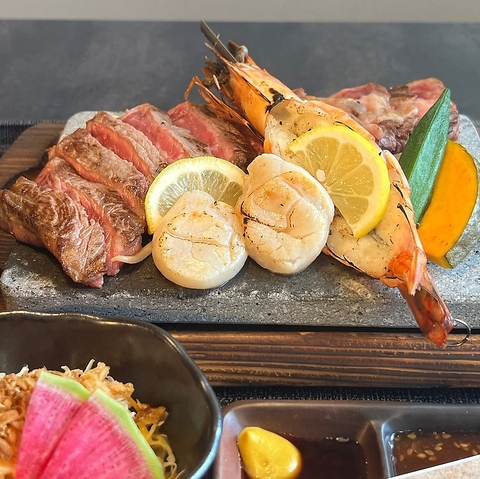 当店自慢のステーキには、『富士山の溶岩石』を使用!なんと3つの効果が!【1】遠赤外線効果!炭焼きの遠赤外線効果に比べて6倍も!【2】カロリーカット!無数の気泡が余分な脂を吸い取ります!【3】耐熱性!極めて冷めにくく、最後まで熱々で楽しめます!なかなか味わえない至福のひとくちを贅沢にご堪能くださいませ。是非、ご注文ください♪