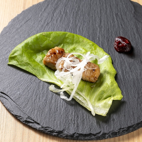 信州味噌にアレンジを加えた特製味噌で漬け込んだ三元豚を、ひとくちサイズでご提供。ひと切れからご注文可