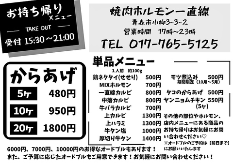 焼肉ホルモン 一直線 テイクアウト 2025/07/13 更新