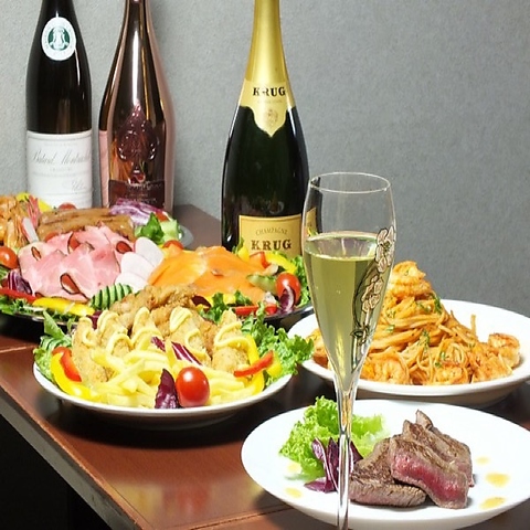 広々とした空間で思う存分楽しんでいただけます★寅正 新橋本店から届くオードブルもしくはコース料理を楽しんでいただけます★お料理もステーキやピザ、本日のパスタといったイタリアン中心にこだわっておりますので華やかな銀座の大人気店でお楽しみいただけること間違いなし!