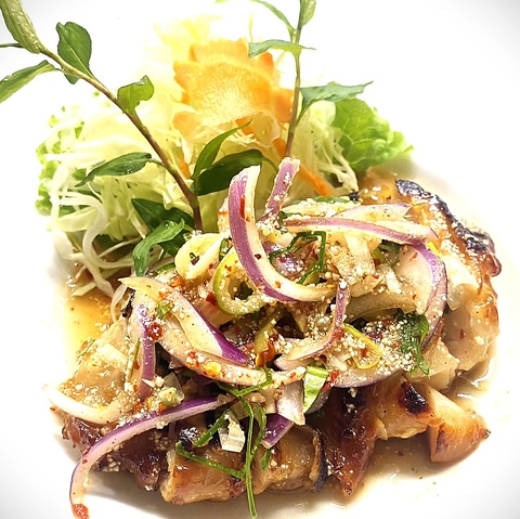 ハープやニンニク、ナンプラーをかせた牛肉たたきスパイシーサラダ
