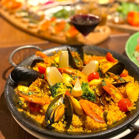 大好評のスペインコースのメインのパエリアが単品でもお楽しみ頂けます。魚介のダシでじっくり炊き上げたボリュームある一品です。