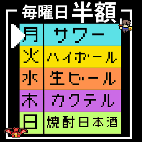曜日毎にドリンクを半額でご提供◎生ビールや日本酒も!