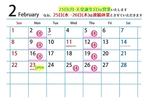 2月営業カレンダー