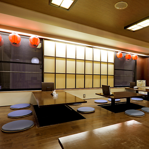 店内の奥は小上がりになっています。お席は堀ごたつになっていますのでごゆっくりお寛ぎ頂けます。5つお席がございますので、大人数の宴会などにもご利用頂けます。