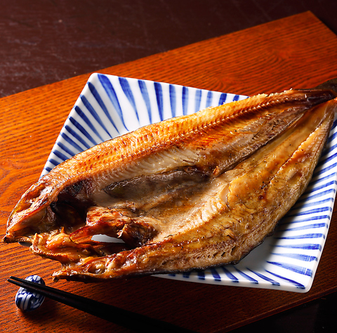 脂がのったほっけを半身丸ごと香ばしく焼き上げました。ふっくら肉厚で箸が止まらない、ジューシーな旨みが広がる当店の人気メニューの一つです♪