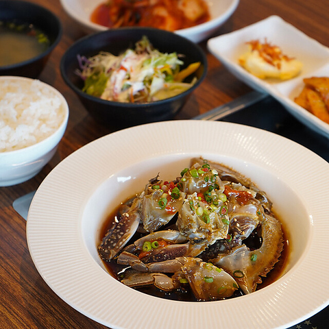 お店のおすすめランチセットのカンジャンケジャン定食です。ディナーでは2380円のものをランチのお得でより安くお楽しみできます。 セットとして“定番のカンジャンケジャン+3種類のおかず+サラダ+キムチ+スープ+ライス”が出ます。ぜひランチのお得な価格で高級でおいしいカンジャンケジャンをお試しください~