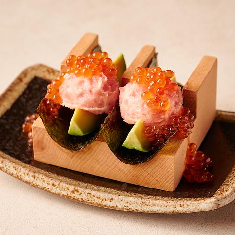 いくらをあしらった華やかな海苔巻き