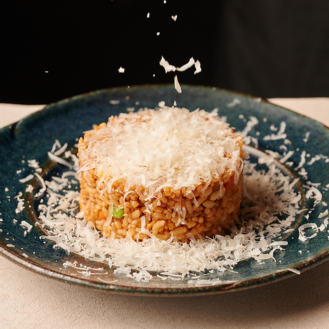 自慢の鶏肉醤油チャーハンにチーズを振りかけた贅沢な一品