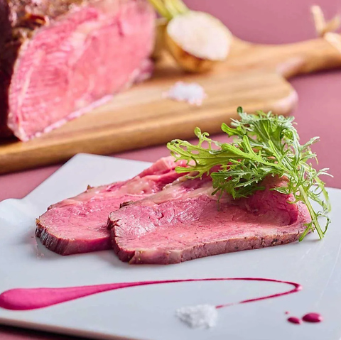 低温調理でじっくりと仕上げ、肉の旨みと脂の甘みを最大限に引き出したカシュカシュ伝統のローストビーフ。