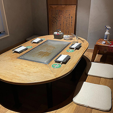 【くつろぎながら楽しむ掘りごたつ】掘りごたつの席でゆったりとくつろぎながら、熱々の鉄板料理を楽しむことができます。香ばしい香りが広がり、当店自慢のお好み焼きが絶妙に焼き上がり、食べるたびに幸せな気分に。友人や家族と一緒に、温かい空間で楽しいひとときを過ごせること間違いなしです。
