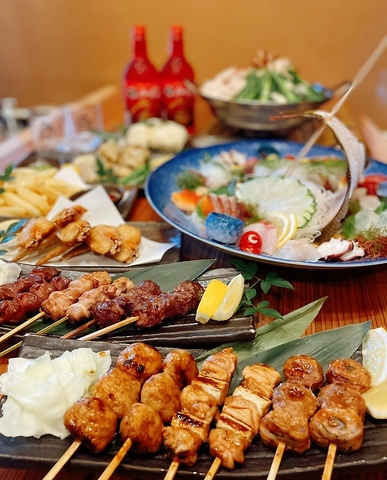 おすすめ刺身の盛り合わせにカープ鳥特製つ鍋!焼き鳥串盛!季節料理!店内メニューの瓶ビール以外の飲み放題コース!!圧倒的な満足感で完封勝利確定!!電話で予約受け付けております!