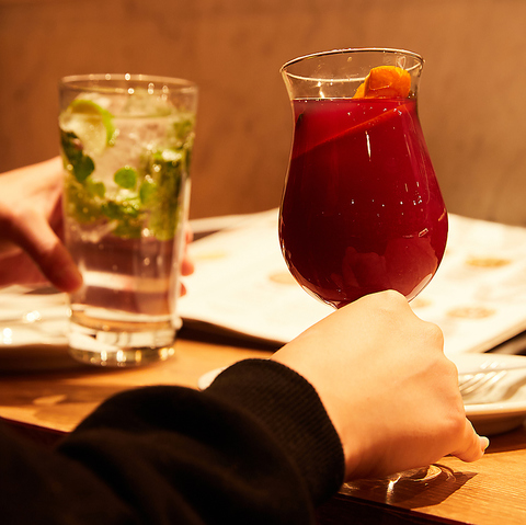 まるで海外にいるようなおしゃれな店内。会社宴会やパーティー、女子会やデート、などあらゆるシーンでお使いいただけます。
