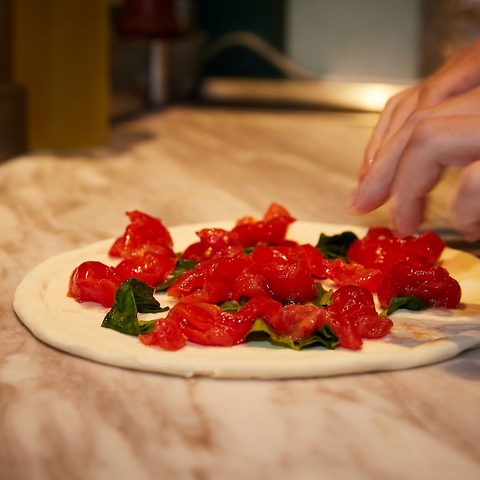 本場ナポリの窯職人による手造りの薪窯で焼き上げるピッツァは格別。外はカリッ、中はもちっとしており、香ばしい風味も楽しめます。職人が1枚1枚心を込めて焼き上げます。