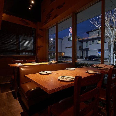 広い窓で囲まれた店内。お昼は明るく開放感があり温かい日差しが入ります。夜は洗練され、おしゃれだけどカジュアルで入りやすいアットホームな店内です。