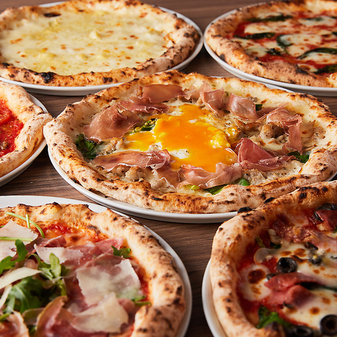 イタリアの窯職人が作ったピッツァ窯の中で焼き上げるナポリピッツァは、薄生地なのにもちもちで、薪のかおりが香ばしい逸品です。ご家族、お仲間同士のディナーやパーティに、わいわい楽しくイタリアンスタイルでお楽しみ下さい。