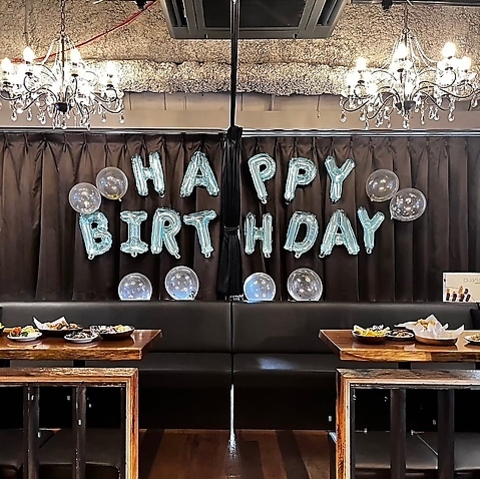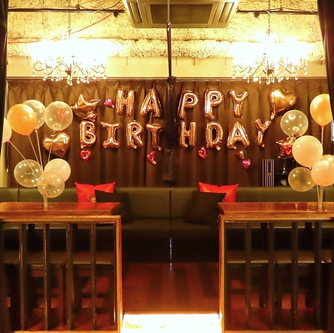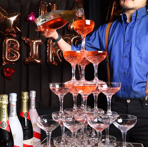 誕生日やお祝い事、結婚式の2次会や忘年会・新年会、送別会に♪シャンパンタワーを貸切のお客様には無料でご用意させていただきます!その他サプライズ演出もお気軽にご相談ください!店内飾り付け自由です♪