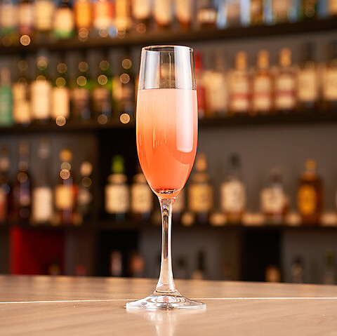 桃のやさしい甘みと華やかなプロセッコロゼが魅力のカクテルです。見た目にもかわいらしく、乾杯の一杯やデザート感覚で楽しむのにもぴったりです。フルーティーで軽やかな口あたりが心を和ませてくれます◎