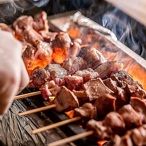鮮度抜群!炭火串焼き(やきとん)。当店のお肉は朝挽きのお肉がその日のうちに入ってくるので、鮮度抜群で旨味もたっぷり♪仕入れてからすぐに一本一本串打ちしております。熟練の焼き師が焼く串焼きは、炭火の香りを纏い香ばしくジューシーな仕上がりに。豚レバーや豚ハツがおすすめです。