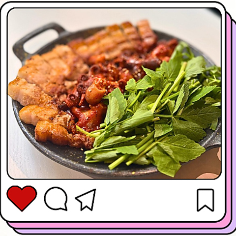 2CMの厚切り生サムギョプサル・チュクミ色んなものと一緒に包んで食べたら最高!すごくおすすめ致します。