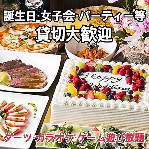 誕生日・記念日のサプライズ・結婚式の二次会・各種パーティーは当店にお任せください★個室or店内貸切などプライベート空間で盛り上がれる!バースデーケーキ・バースデープレートご用意可能ですので気軽にご相談ください♪各種演出も一緒に盛り上げちゃいます!便利なコースは3800円からございますので、利用シーンに合わぜてお使いください♪