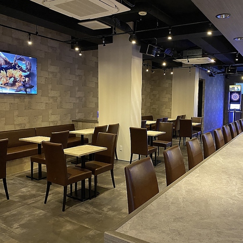 バーカウンターは13名までお座り頂ける広々としたお席です。おひとり様でお酒を楽しんでいただくのもよし!ちょっとおしゃれな雰囲気なのでデートにも最適です!スタッフが近くにいるのでよく話しかけてきます笑