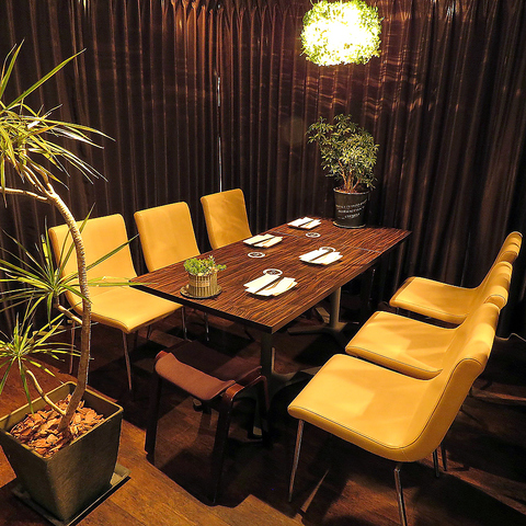 観葉植物やライトがお洒落な、テーブル席のご用意ございます!6人掛けのテーブル席ですので、様々なシーンでお使いくださいませ☆会社宴会やご友人とのお食事などにピッタリです◎ご予約お待ちしております!