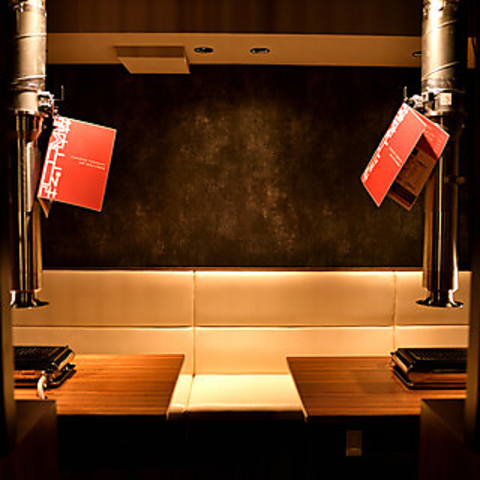 黒を基調としたシックで落ち着いた雰囲気の店内。人気の「完全個室」は、6名様までご利用頂けるプライベート空間です。周りを気にせず、ゆったりと落ち着いて当店自慢のお肉をご堪能頂けます!その他にも、半個室感覚でご利用頂けるBOXテーブル席や、最大6名様までご利用頂けるテーブル席、デート利用にピッタリのカウンター席もご用意してます