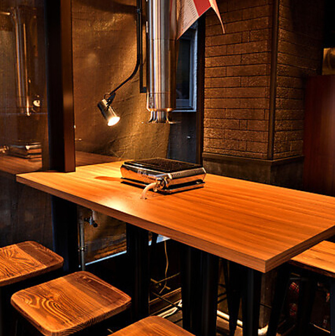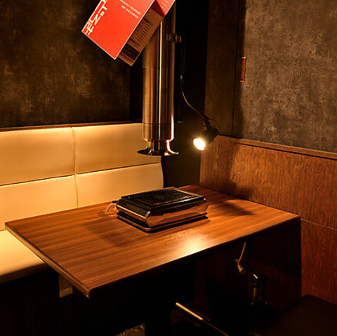 黒を基調としたシックで落ち着いた雰囲気の店内。人気の「完全個室」は、6名様までご利用頂けるプライベート空間です。周りを気にせず、ゆったりと落ち着いて当店自慢のお肉をご堪能頂けます!その他にも、半個室感覚でご利用頂けるBOXテーブル席や、最大6名様までご利用頂けるテーブル席、デート利用にピッタリのカウンター席もご用意してます