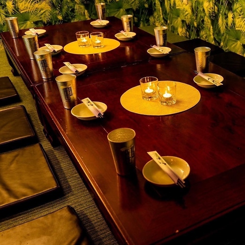 アジアンテイストの店内には個室スペース・テーブル&ソファスペースをご用意。各種ご宴会、女子会や誕生日会、会社宴会、3H、貸切パーティなどにも♪お洒落なバーでのプライベートパーティーはオススメ◎シーンに合わせてお使い頂けます♪奥の個室席のみの貸切も可能ですのでお気軽にお問い合わせ下さい!♪