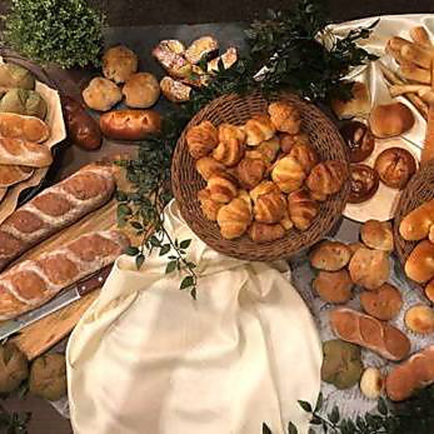 【自家製パンは食べ放題でご提供】店内で焼き上げる自家製パンを食べ放題でお楽しみいただけます。随時、焼き立てをお席までお持ちいたします。お料理とも相性抜群の焼き立てパンをお楽しみください。