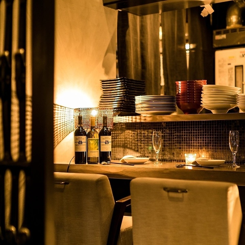 お1人様からご利用出来るゆったりくつろげるカウンター席です。お仕事帰りに軽く1杯飲んでみませんか。目の前がキッチンなので見ても楽しめる最高の空間になっております。