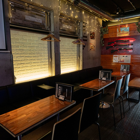 お店に入ると左手に当店メインのガンシューティングスペース、右手にゆったり寛げるテーブル席!!世界のビールとおつまみを楽しみながらガンシューティングを楽しめます!!デートやいつもの飲み会じゃつまらない刺激をお求めのお客様は是非当店をご利用ください!!