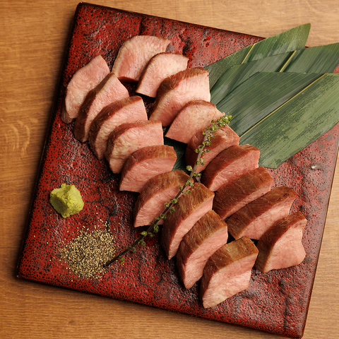 じっくり12時間低温で火入れした極厚牛たんは、レアな旨みと驚くほどのやわらかさ。