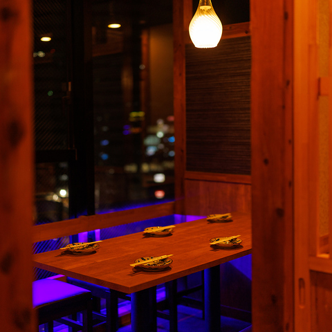 【完全個室完備】店内に入ると隠れ家のような寛ぎの空間が広がります。個室席は2名様から団体様まで幅広く対応!最大70名様までの個室もご用意可能です。お仕事帰りの飲み会、接待や二次会、各種ご宴会をお楽しみください。飲み放題付コースは多様な価格帯でご用意しております◎ただいま飲み会・宴会のご予約受付中!