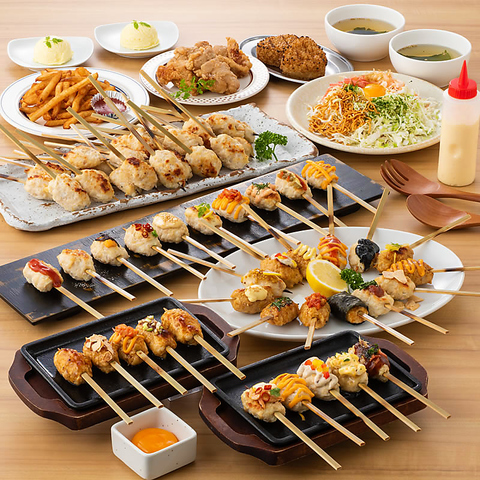 2名様からOK!卓上レモンサワー飲み放題120分付きでつくね全64種類食べ放題の超お得コース。ホットペッパーのクーポン使用で10名様以上なら幹事様1名様分無料に!!