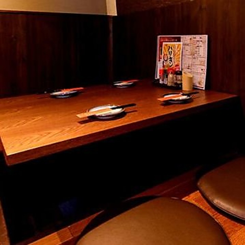 心地よい掘りごたつ席♪4名様までのグループに最適な空間をご用意しています。リラックスしながら会話を楽しむのにぴったりな2卓をご用意。足を伸ばしてゆったりとした時間を過ごしませんか?温もりあふれる雰囲気の中で、おいしい料理と共に素敵なひとときをお楽しみいただけます。心温まるおもてなしでお迎えいたします。