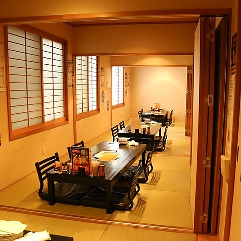 2階が4部屋(ゆったり座ると全て4名席)の畳のお座敷になっております。2階のお座敷席ですと仕切りを外せますので団体のお客様にも対応可能となっております!会社宴会や歓送迎会、法事、ご親族との集まりでぜひご利用ください!