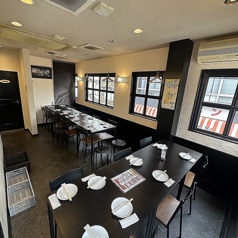 落ち着いた雰囲気で広々とした空間、大人数での宴会も◎窓も沢山ありますので開放感がありゆったりとくつろいで頂ける空間となります。2階テーブル席♪