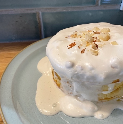 マカダミアナッツのクリームたっぷりの米粉パンケーキ