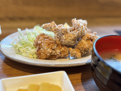 BATON特製のタレで漬けた特製からあげサクサクでボリューム満点の定食です