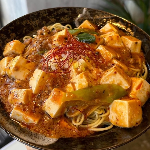 こだわりの四川風麻婆豆腐を、もっちりとした極太麺にたっぷりとかけた一杯。豆腐のなめらかさ、肉の旨味、そして自家製辣油と唐辛子の香りが極太麺にしっかりと絡み、口いっぱいに広がります。“麺に麻婆豆腐をかける”という、当店ならではの豪快なスタイルで、最後まで食べ飽きない満足感。辛さ・痺れはお好みに応じて調整可能です。