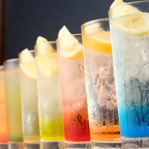 名物テラスヒボール、様々な種類のお茶ハイを始めとする各種酎ハイ、8種のウィスキー、焼酎も豊富にご用意