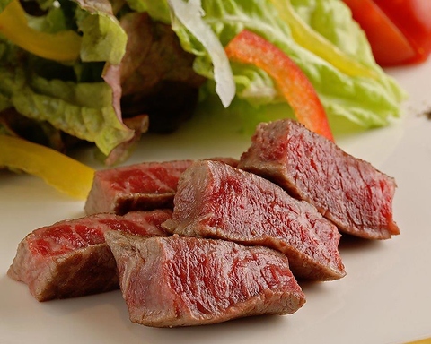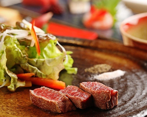 8,000円の『美野里コース』は、季節の食材を使用したお料理をお得に楽しめる人気のコースです。料理長自らが豊洲で毎朝目利きする新鮮な魚介のお刺身に、見た目華やかな前菜盛り合わせ、島根県かつべ牛のステーキなど豪華な内容。ステーキは1頭から3%ほどしか取れない希少な「シャトーブリアン」を使用しております。