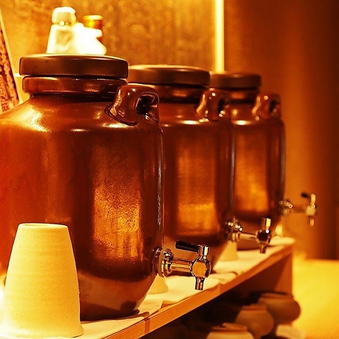 当店の焼酎は、約1ヵ月ほど甕で熟成させてご提供しております。独特の香りとまろやかさがより一層増し、美味しい焼酎がプレミアム酒に匹敵するほどの味わいになります。また、日本酒はお料理とよく合う吟醸酒など、辛口でキレのある銘柄を中心に取り揃えております。